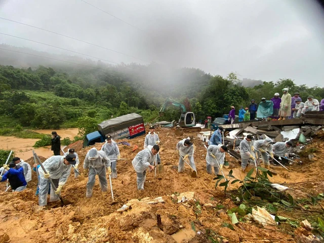 Tính đến trưa nay 30/9, dưới trời mưa to, công tác tìm kiếm các nạn nhân mất tích trong vụ sạt lở đất thuộc địa phận thôn Nậm Buông vẫn đang được thực hiện rất khẩn trương.