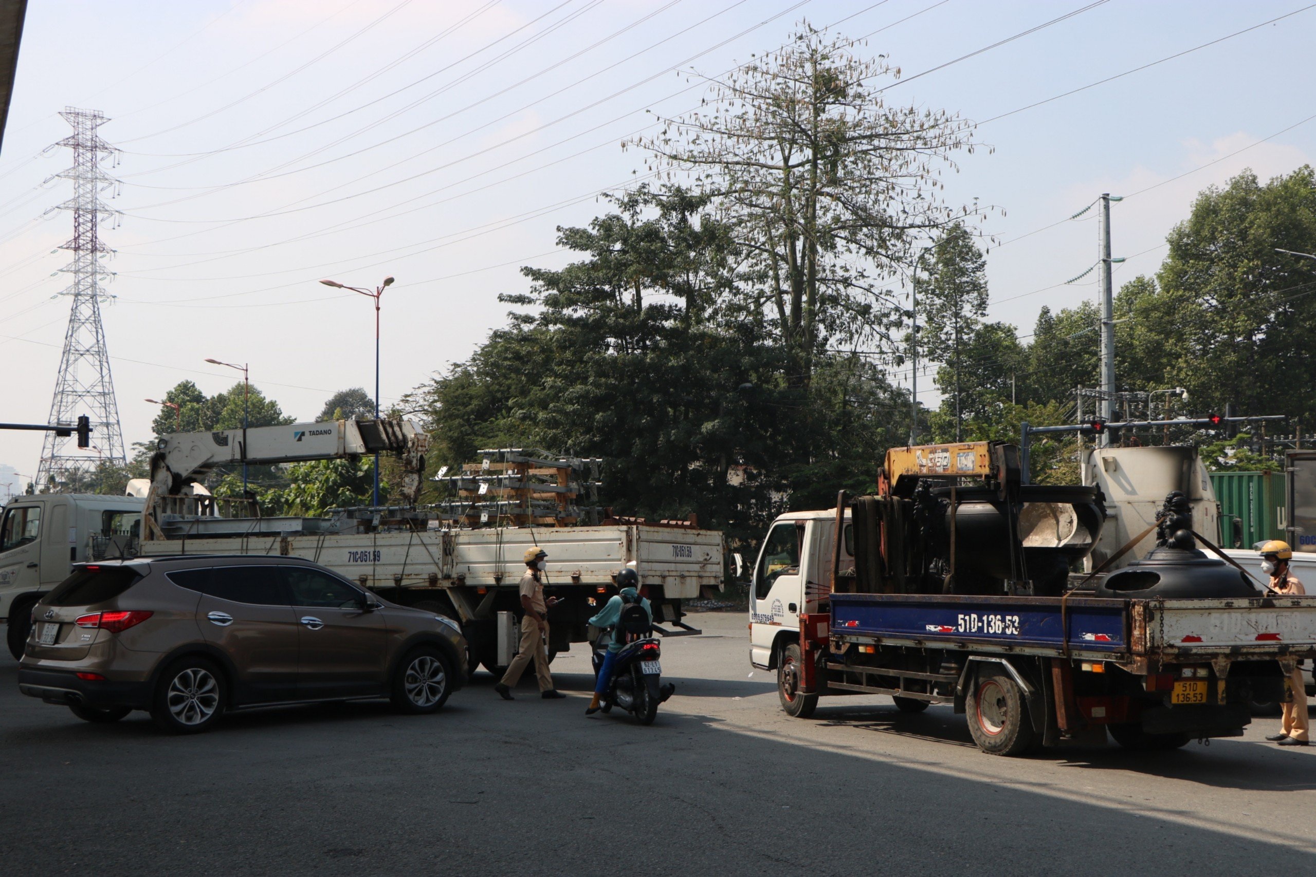 Lực lượng CSGT rất vất vả điều tiết giao thông để giải toả ùn tắc.