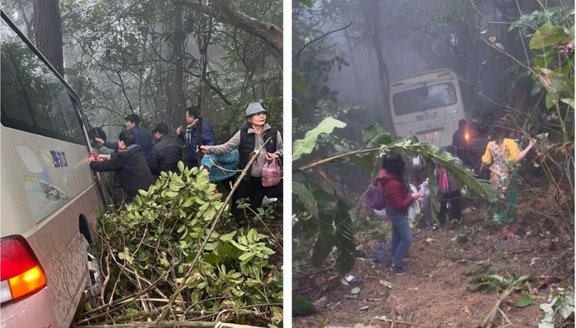Lúc này, trên xe có 29 người (cả lái xe). Đây là đoàn cán bộ hưu trí Bệnh viện 110 - tỉnh Bắc Ninh.
