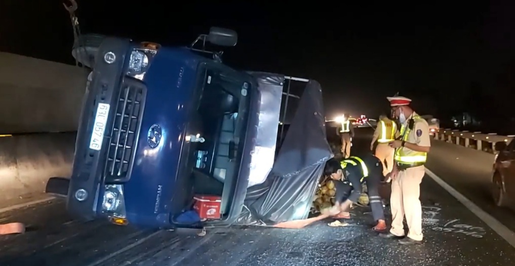 Xe tải lật trên cao tốc, nhân viên cứu hộ chạy bộ 2km mở đường cho xe cấp cứu